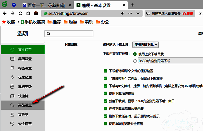3、在打开的窗口界面中,点击左侧栏中的"高级设置"选项。