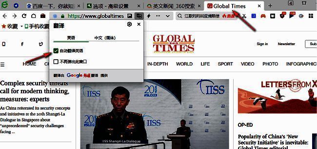 5、最后打开任意一个英文网站,在上方的弹窗中将"自动翻译英语"小方框进行勾选就可以了。