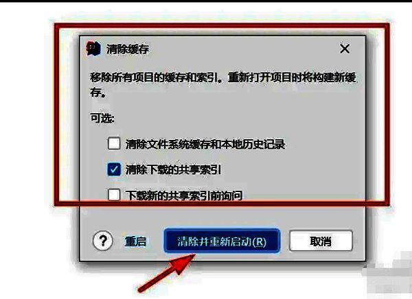 3、然后在弹出的窗口界面中,选择需要清理的内容,最后点击"清除并重新启动"按钮就可以了。