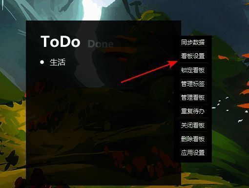 2、接着点击下方选项列表中的"看板设置"。