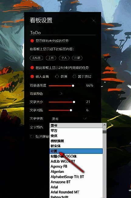 4、然后点击"文字字体"右侧的选项框下拉按钮吗,在下方给出的列表中选择合适的字体选项。