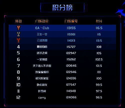 EA丶club门派则是从人气复活赛成功突围,锁定了总决赛的最后一个席位。至此,12支英雄联赛总决赛晋级门派已经全部诞生。