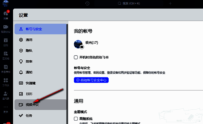 3、在打开的窗口界面中,点击左侧栏中的"视频会议"选项。