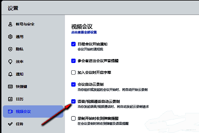 飞书怎么设置自动录制语音视频通话