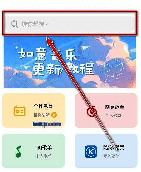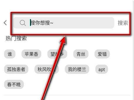 1、在首页顶部找到并点击【搜索框】,准备进行歌曲查找。
