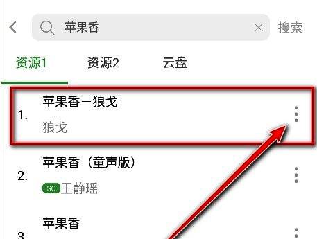 3、在搜索结果中找到你想要的歌曲版本,点击该歌曲右侧的【三个点】图标,展开更多选项。