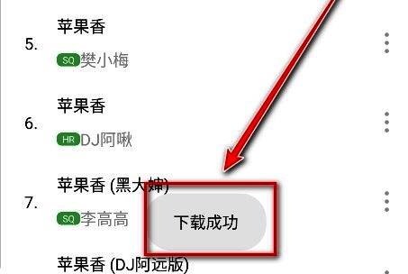 6、下载完成后,手机界面会弹出“下载成功”的提示,此时你可以随时在【我的音乐】-【已下载】中找到该歌曲,享受离线畅听。