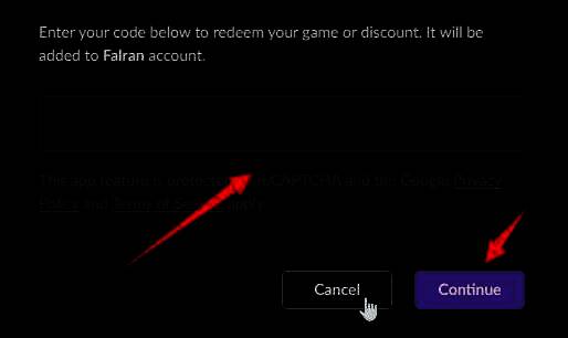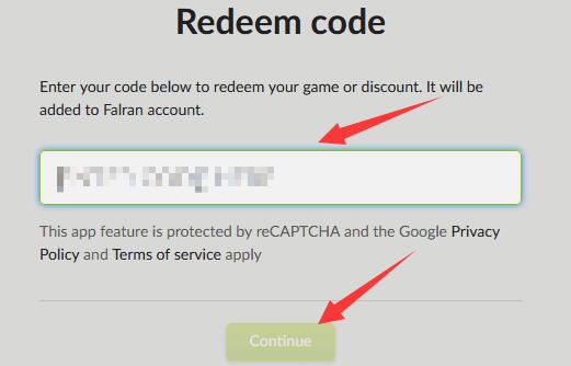 2、然后在给出的窗口中输入正确的兑换码,最后点击"continue"按钮即可。