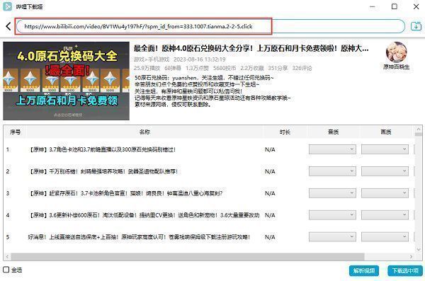 5、复制链接后,该链接的视频内容就会出现,根据自己的需求来进行选择下载,可以选择单独内容进行下载,也可以全选进行全部下载。