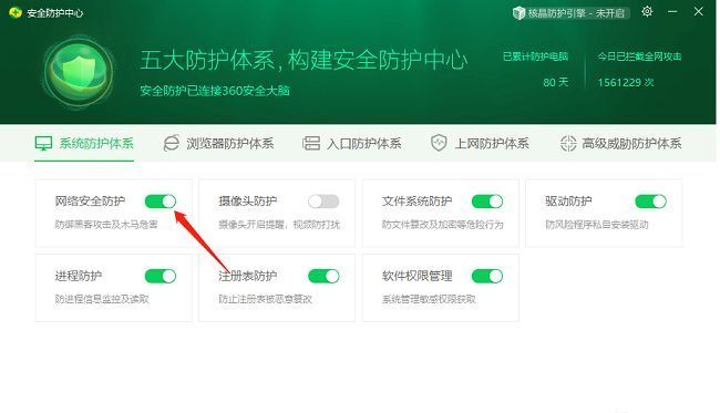 3、接着找到"网络安全防护"选项,将其开关按钮打开。