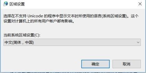 6、将"当前系统区域设置"修改为"中文",点击"确定"保存。