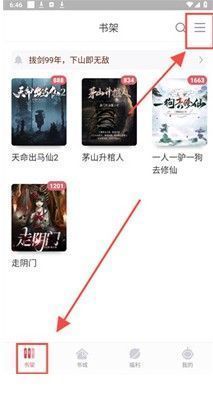 1、首先访问左下角的【书架】界面,点击右上角的【按钮】。