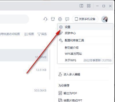 2、接着点击下方选项列表中的"设置"。