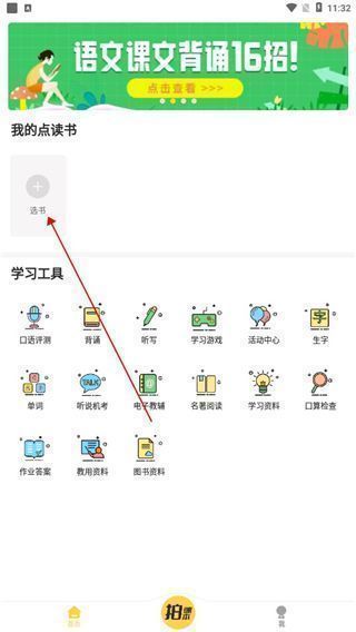 倍速点读app如何添加点读书,进入软件首页,点击添加选书,选择自己所在的年级,点击进入页面,然后选择自己的课本的进行添加,用户可以看到课本的内容和各大教材是同步的,接下来返回页面,可以看到自己刚刚添加的书,如果没有自己的课本教材可以点击拍课本进行添加。