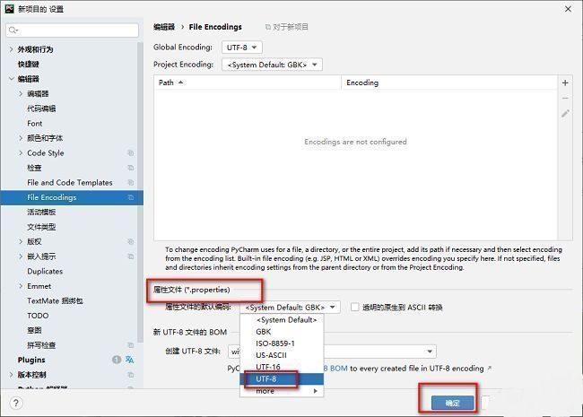 5、最后将下方"属性文件的默认编码"也设置为"project Encoding",并点击"确定"保存即可。