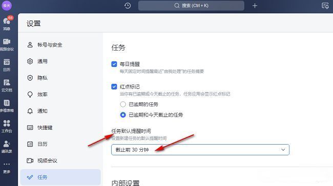 飞书如何设置默认任务提醒时间