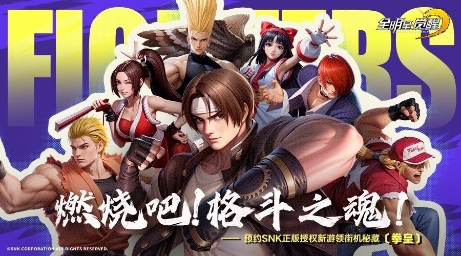 SNK正版授权,街机大招策略卡牌手游《全明星觉醒》即将重磅来袭,全平台预约火热进行中!这款集SNK旗下《拳皇》《饿狼传说》《侍魂》三大IP众多经典角色的手游,即将以高还原度的呈现、创新的玩法设计,让玩家与童年偶像再度并肩,开启一场跨越时空的格斗狂欢!