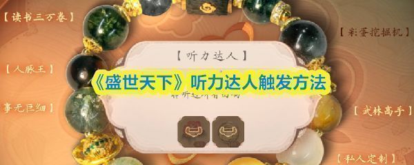 《盛世天下》游戏中,【听力达人】成就需玩家在剧情中集齐所有关键回响。请仔细聆听每一段对话与音效,确保无一遗漏。当全部回响汇聚,结局时将触发深邃共鸣,达成此隐藏荣誉。