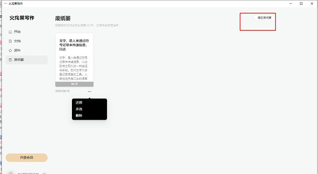 4、还可以点击右上角的"清空废纸篓"按钮来将所有的记录删除。