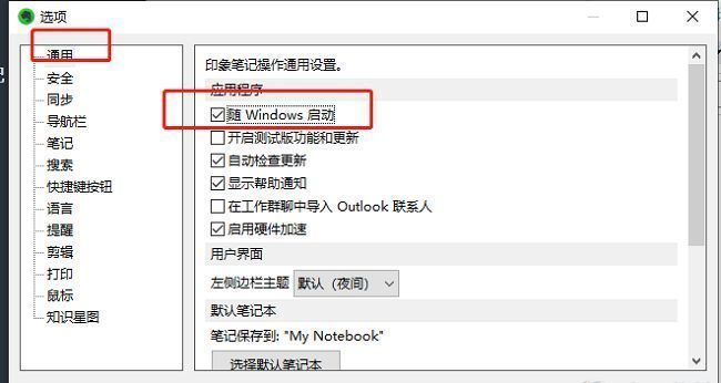 印象笔记如何关闭开机启动