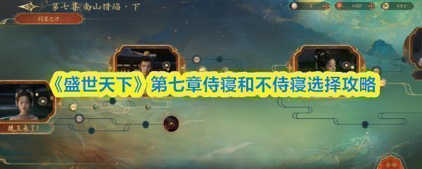盛世天下游戏中,很多小伙伴可能第七章已经把侍寝和不侍寝都选过了,然后有倒计时的也搞过了,但是进度还是98,这里该怎么选呢?下面给大家带来了《盛世天下》第七章侍寝和不侍寝选择攻略,一起看看吧!