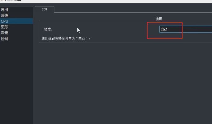 7、左侧的cpu页面中,精度选择自动选项。
