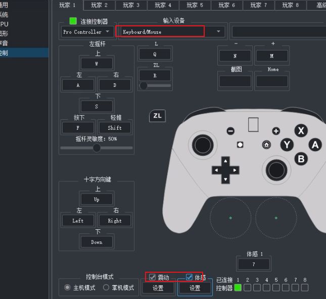 15、控制选项中,可以根据自己的需求来选择是手柄、还是键盘鼠标,如果是手柄记得勾选下方的震动和体感选项,点击右下角的ok模拟器设置完毕。