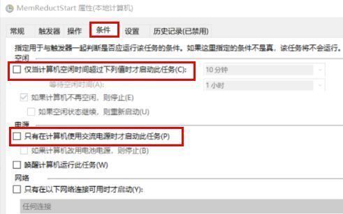 7、最后点击上方中的"条件"选项卡,将下图中的两个选项都勾选上,随后将电脑重新启动就可以了。