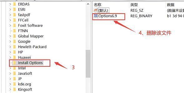 3、接着点击其中的"Install Options"文件夹,然后找到右侧中的"Options6.9",右击将其删除。