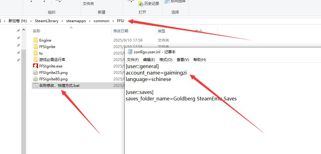 双击打开游戏目录下面的“名称修改,快捷方式.bat”,找到“account_name=gaimingzi”,把“gaimingzi”改成自己想要的名字保存。
