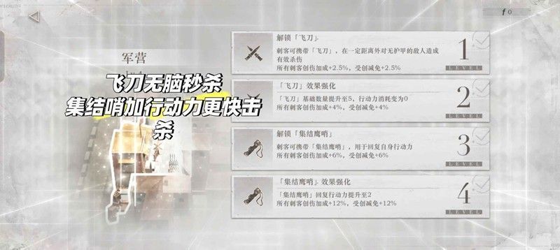 2.飞刀可以直接击杀小怪,哨子拉行动力更方便操作,烟雾可以让人物在空地停留不被发现进入战斗,飞行器可以房顶之间无脑飞,可以从塔飞到大房顶,但是不能从大房顶飞到塔