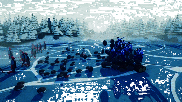 与传统印象中杀伐果断的残酷战争不同,《全面憨憨战争模拟器》仿佛置入另一个风格迥异的“平行时空”。红蓝双方代表出征的士兵们并非一众精锐猛将,而是一群眼神中闪烁智慧光芒的橡胶人们。