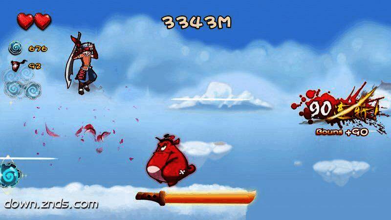 《忍者无双 TV版》突破性地将“边跑边砍”的战斗机制融入跑酷玩法中,使原本单一的逃亡式闯关升级为充满策略与打击感的动态战斗。玩家在高速奔跑的同时,可以精准斩杀沿途敌人,通过连续击杀触发如double kill、triple kill等连击奖励,极大提升了游戏的可玩性与刺激感。