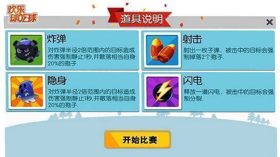 除了常规的吞噬玩法,《欢乐球吃球 TV版》还推出了独创的道具大乱斗模式。在这个模式中,玩家可以使用炸弹、射击、隐身等多种道具展开策略对决,带来更具变化性和快节奏的战斗体验。