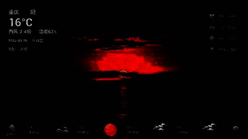 凤凰天气TV版应用界面展示,清晰的天气数据与动态背景相结合">