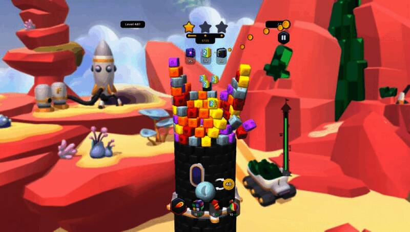 游戏的核心玩法围绕“颜色匹配”与“物理破坏”展开,玩家需要观察高塔结构,选择合适的角度和时机进行射击,从而触发连锁反应。每次射击不仅影响砖块的分布,还会改变整个高塔的稳定性,考验玩家的判断力与策略性思维。