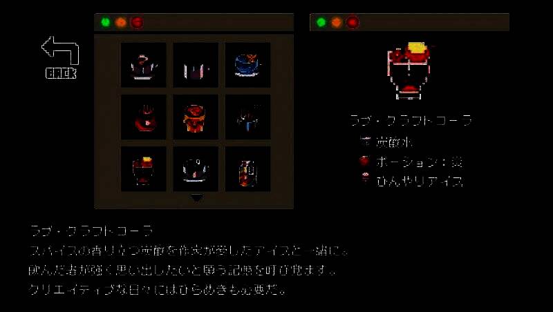 白天,玩家需要根据顾客的需求调配如“Love Craft Cola”等独特饮品,通过制作记忆唤醒或遗忘的配方来赚取利润;夜晚则需探索咖啡馆隐藏的秘密区域,寻找关键线索。游戏中包含四大核心玩法模块:饮品调制、顾客互动、场景探索与多重结局系统。