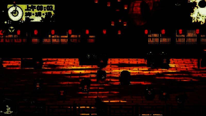 游戏采用16位经典像素画风,角色立绘精致,服饰纹理与表情变化细腻生动。动态场景设计增强沉浸感,例如钓鱼时的水面波动、雷雨天气的光影变化,以及毒花幻觉触发的屏幕扭曲特效,极大提升了视觉表现力。