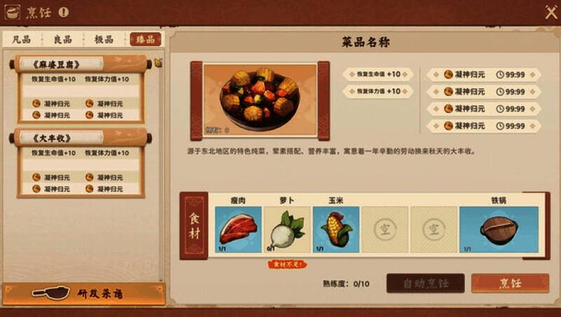 游戏玩法以农场经营与生产为核心,玩家从开垦荒地、修复水车起步,逐步建立自己的田园庄园。种植作物、养殖牲畜,并通过制茶、酿酒、烹饪等方式实现自给自足。茶园系统支持独立经营,玩家可解锁晒茶、炒茶等传统工艺,并邀请友人品茗赏月,体验古人闲适生活。