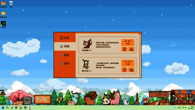 在游戏中,玩家可以领养并照顾多种多样的动物伙伴,包括兔子、狐狸、羊驼、小鸟,甚至还有软萌可爱的史莱姆以及神秘的僵尸生物。通过喂食、抚摸等方式与它们建立亲密关系,不仅能提升亲密度,还能加快成年动物掉落金币的速度,让玩家在享受互动乐趣的同时也能获得实际收益。
