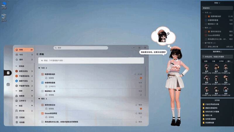 除了丰富的互动内容,《战盟桌面精灵》还集成了多项实用工具功能。玩家可通过软件管理日程待办事项、整理桌面文件,甚至快速查找所需文档,极大提升了日常办公与生活效率。此外,每日登录互动还可获得银币奖励,用于解锁更多时装与装饰品。