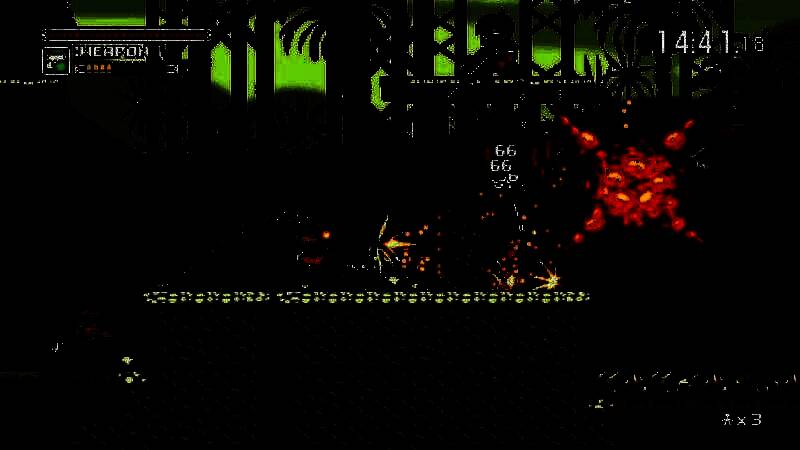 游戏采用横版动作闯关模式,类似《合金弹头》。玩家在充满挑战的关卡中,通过跳跃、射击、出刀等操作与敌人激烈战斗,消灭一波又一波的敌人,突破重重障碍。