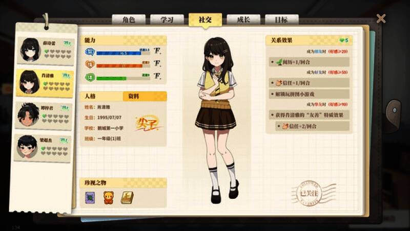 游戏涵盖学习、社交、体魄等多方面属性的提升机制。玩家可以通过安排学习时间来提高成绩,参与社交互动增加情商,进行体育锻炼增强体魄。
