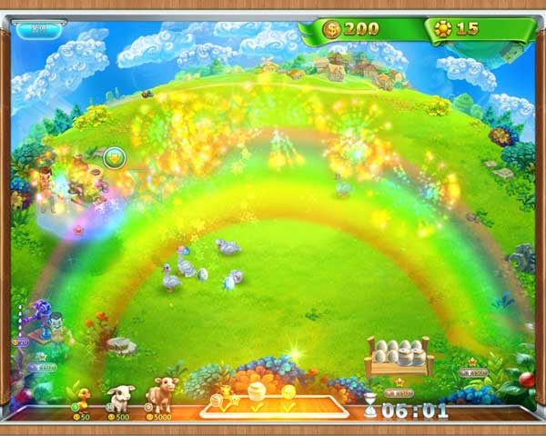 画 面:游戏画面采用幻想风格的农场游戏,绿色的草地和清澈的蓝天,真是清新养眼,游戏中的角色和农场的动物逼真可爱,富有个性,细致的画面表现和丰富的模拟元素带给你经营农场的真实乐趣。