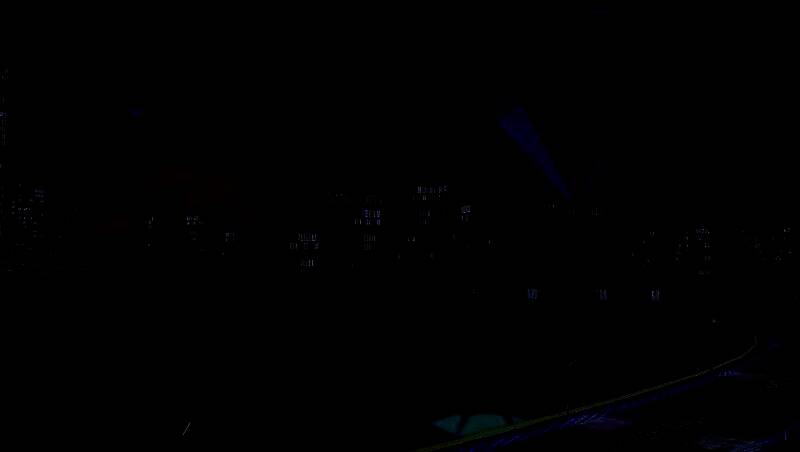 在转弯处撞上霓虹灯的条纹
