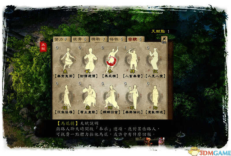 此游戏把金庸先生“飞雪连天射白鹿,笑书神侠倚碧鸳”等14部小说中一些脍炙人口的片段,如六大门派围攻光明顶,冰火岛,英雄大会等融合在一起,改编而成,具有14个支线任务。玩家可自由选择游戏路线,其间基本上没有因果关系,只不过其中有一些任务相对比较难,因此需先完成别的任务才成。游戏的剧情是开放的,游戏地图也是开放的。在游戏中玩家可邀至多5位非主角控制的人物(NPC)参加队伍,而且游戏中如果行善做好事多,则玩家的品德属性值高,这样一些人物才愿意与你为伍(但是,一些人物的加入会使你的品德属性降低,比如采花大盗--田伯光)。反之,如果杀戮过重,最后过关时将遇到正派大侠们连手攻击,就较难回到现实世界里来了。