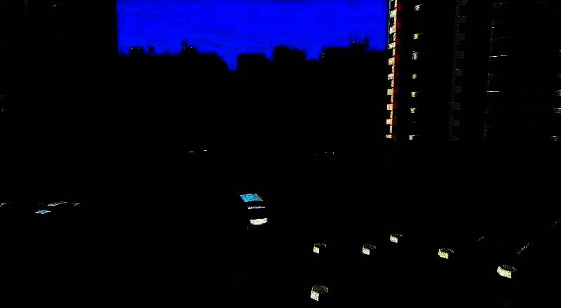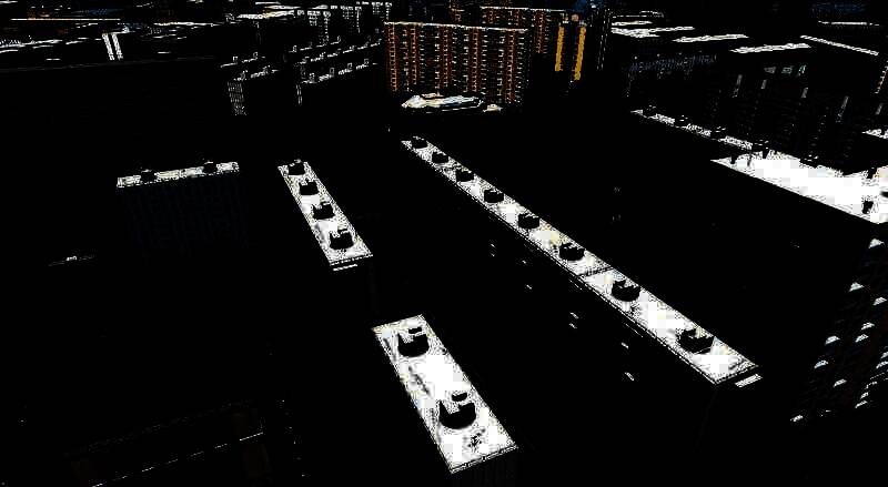 狭窄的、乱糟糟的院子和多层停车场。