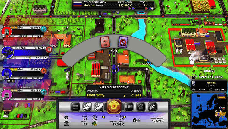 《赚钱者拉力赛(The MoneyMakers Rallye)》是一款有趣的模拟经营游戏,整体玩法类似大富翁,地图则是整个欧洲,你要驾驶赛车穿越欧洲,赚到最多的钱,赢得最终的冠军。