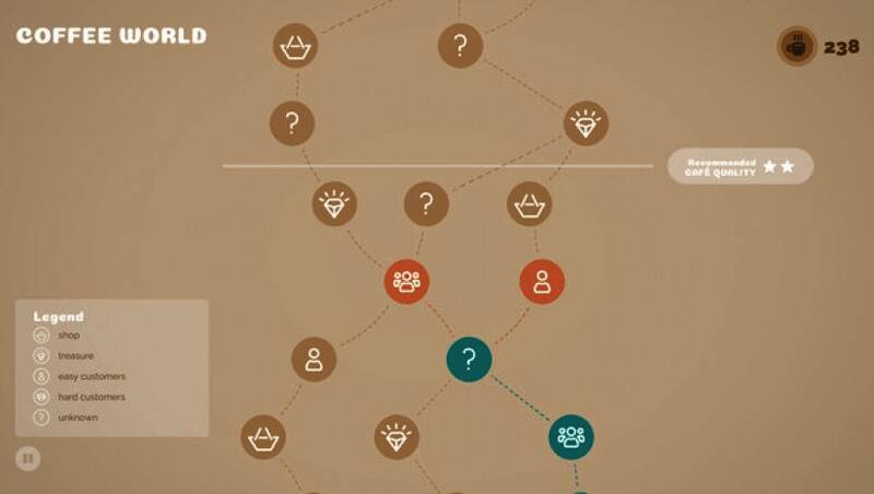 沿途寻找零散的器具和食谱商店,购买并升级你的咖啡制作设备。