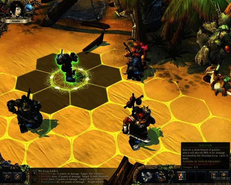 战斗方式类似与英雄无敌的回合制战棋游戏,每个兵种都有其独特的技能和特性。还能施放各种法术或卷轴。Amelie还有宠物龙,可以寻找宝物、攻击敌人和召唤生物等。战斗中还会有各种各样的机关。